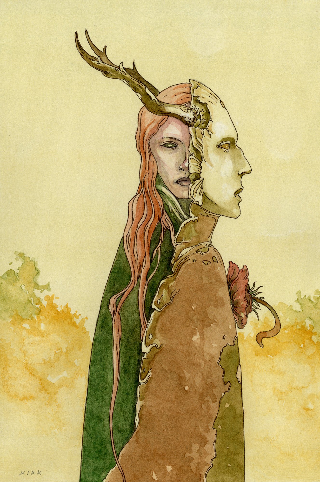 Original ink and watercolour painting by Richard A. Kirk, 2026, on hotpress paper, 10" x 7."