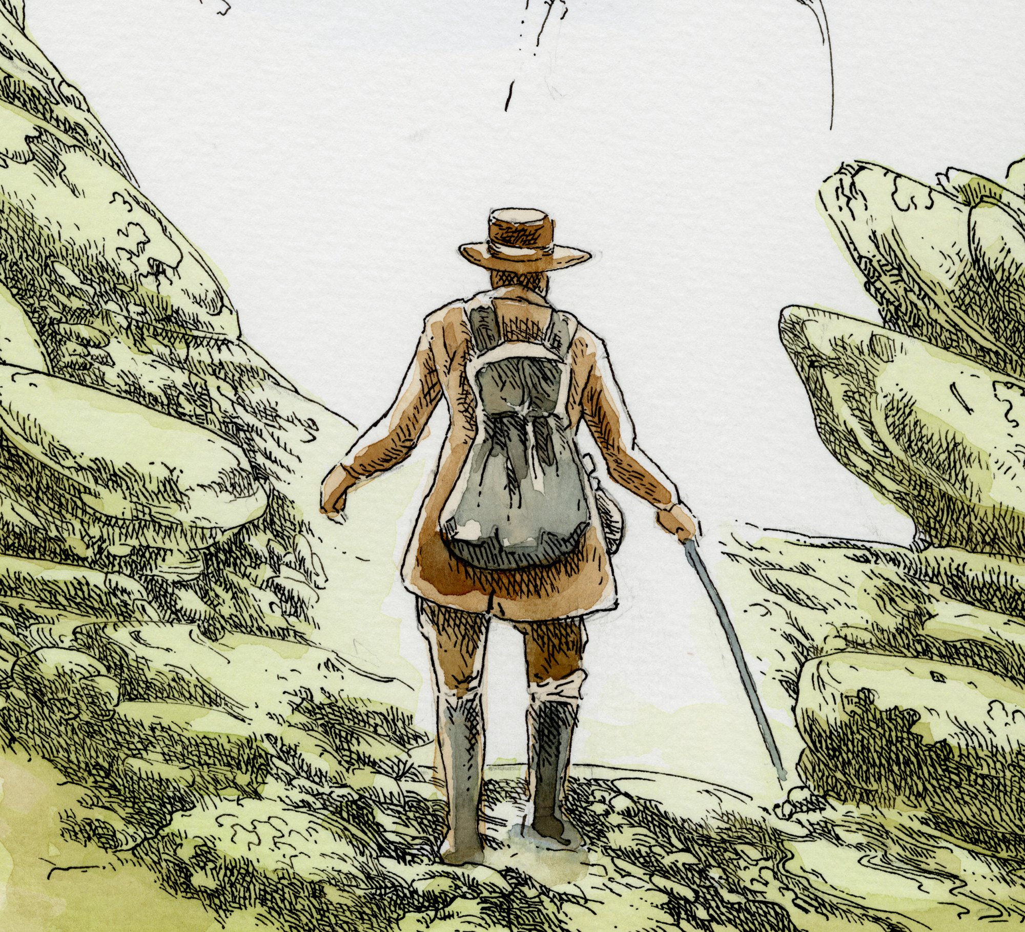 Original ink and watercolour painting by Richard A. Kirk, 2026, on artboard, 12" x 16."